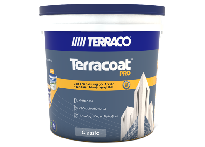 Terracoat Classic (trước đây là Terracoat Standard) là lớp phủ Acrylic trộn sẵn, sản phẩm tạo ra sự kết hợp tuyệt vời giữa bề mặt vân gai cao cấp và tính kinh tế nổi bật thông qua việc dễ dàng sử dụng, mức tiêu tốn nguyên liệu thấp và độ bền vững của bề mặt. Terracoat Classic có tuổi thọ lâu dài, có khả năng chống lại sự bong tróc và phai màu. Terracoat Classic kết dính với bề mặt bên trong cũng như bên ngoài của tấm thạch cao, tấm gỗ ép, thép có lớp lót chống gỉ, tường khô thạch cao, vữa cát/xi măng và bê tông.