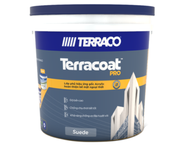 Terracoat Suede là lớp phủ Acrylic trộn sẵn, sản phẩm tạo ra sự kết hợp tuyệt vời giữa bề mặt vân gai cao cấp và tính kinh tế nổi bật thông qua việc dễ dàng sử dụng, mức tiêu tốn nguyên liệu thấp và độ bền vững của bề mặt. Terracoat Suede có tuổi thọ lâu dài, có khả năng chống lại sự bong tróc và phai màu. Terracoat Suede kết dính với bề mặt bên trong cũng như bên ngoài của tấm thạch cao, tấm gỗ ép, thép có lớp lót chống gỉ, tường khô thạch cao,vữa cát/xi măng và bê tông.